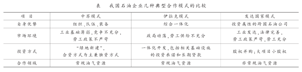 5、我国石油企业国际合作模式比较分析