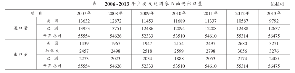 美国、加拿大等地的油气产量增长得益于其非常规油气的开发,而这与传统产油国的大规模持续减产密不可分。自“阿拉伯之春”爆发后,北非和中东地区大规模持续减产累计达到300×104bbl/d。为了平衡国际市场,发达国家凭借勘探和开采技术的突破,使非常规油气资源开发成为可能,美国、加拿大等发达国家逐渐成为关注的焦点。