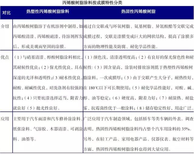 按丙烯酸树脂涂料的成膜特性,丙烯酸树脂涂料可分为热塑性和热固性两大类。