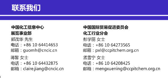 服务于企业进步,引领推动中国石油和化工企业转型、结构调整、产品升级、绿色发展。2019(第十八届)中国国际化工展、第十九届中国国际橡胶技术展、第二十二届中国国际胶粘剂及密封剂展、第十五届中国国际石油和化工水处理技术与装备展同期同地举办,四展联动,倾心打造中国石化产业周。绿色化工,让生活更美好。