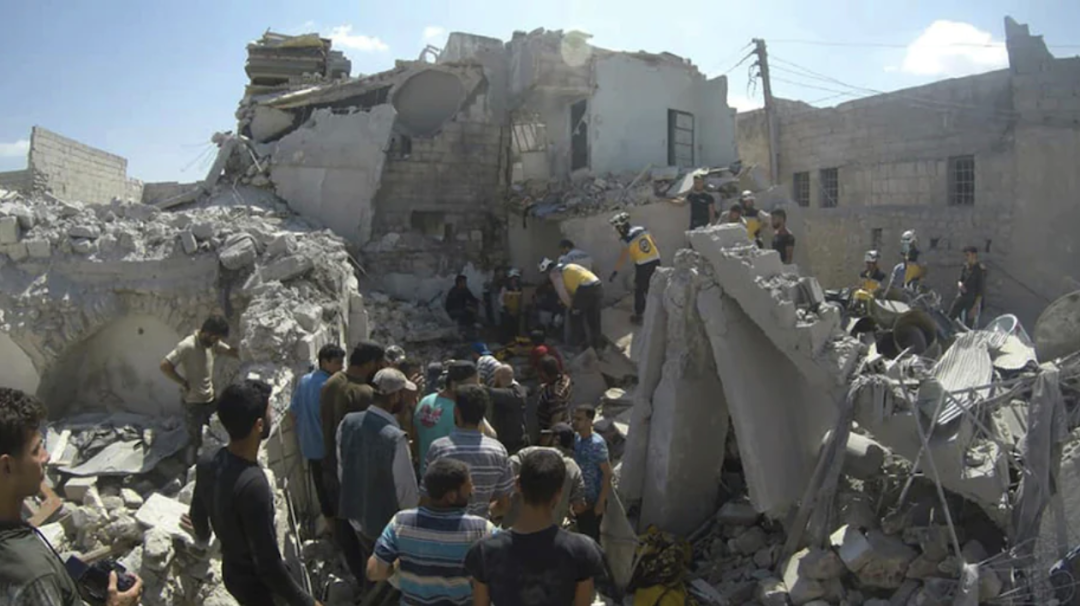叙利亚民防部队在废墟中搜寻幸存者,2019年