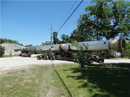 设计要解决的最后一个问题是运输。塔器在休斯顿制造,需要卡车运输1000多英里(约1609公里)将其送到科罗拉多。解决办法是设计鞍形支座,用PV Elite分析鞍座间的弯曲应力。