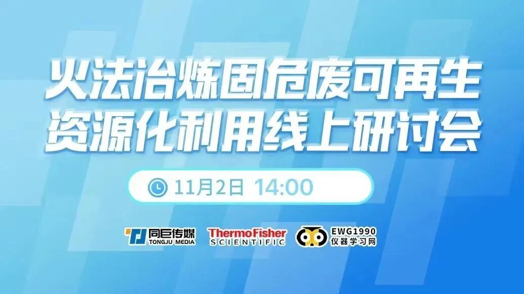 [直播预告] 线上免费直播课程——11月2日火法冶炼固危废可再生资源化利用线上研讨会