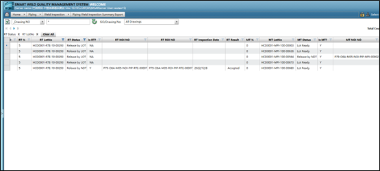 Since the management of NDT (Non-Detective-Test) has always been the pain point of quality management, PCMS provide the function of Lots Management. After Welding, based on a combination of welder, WPS, welding category, inspection class and inspection percentage, welds could be divided into lots. In one lot, system will select one weld randomly to do NDT. For example, some welds need to be tested by RT (Radio Test, one type of NDT). If the inspection percentage of these welds is 10%, 10 welds in all qualified welds which has same combination will be formed one lot. One weld in the lot could be selected to finish RT inspection. If this weld passed RT inspection, all welds in the lot will be released.