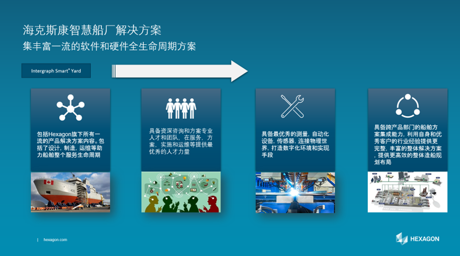 聚焦核心科技的智能化技术和应用 海克斯康数字智能的智慧船厂解决方案(Intergraph Smart Yard)以数字化方阵和优化为特征,将信息技术全面应用于船舶产品的开发、设计、建造、管理和交付的全过程;海克斯康数字智能基于模型系统工程(MBSE-Model Based System Engineering)与设计(MBD-Model Based Design)模式,为海上工程全新模式提供方案支持。基于模型,最终达到快速设计、快速建造、快速检测、快速响应和快速重组的目标,为实现理想的数字化海事做出明智决策。