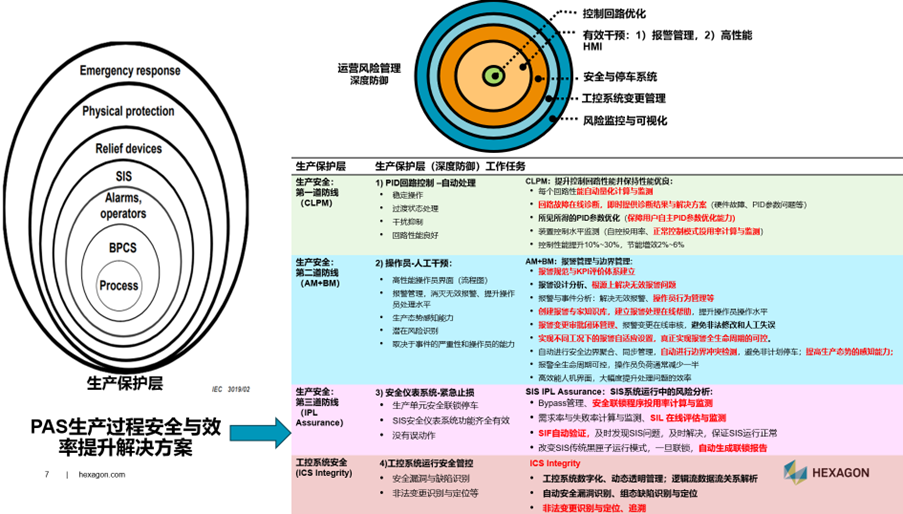 PAS解决方案是一款从生产扰动产生、系统自动响应、生产异常的人工干预到安全停车的全生命周期生产过程安全与优化解决方案,依据IEC和ISA的生产保护层理念,开发针对生产过程安全一体化解决方案,即通过构筑三道安全防线实现生产过程安全与优化: