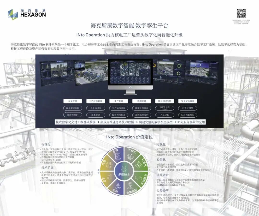 INto Operation 助力核电工厂运营从数字化向智能化升级海克斯康数字智能的 INto 软件系列是一个用于化工、电力和海事工业的全生命周期工程解决方案。INto Operation 是真正的国产化多维融合数字工厂系统,以数字化移交为基础,桥接工程建设及资产运营数据实现数字孪生应用。