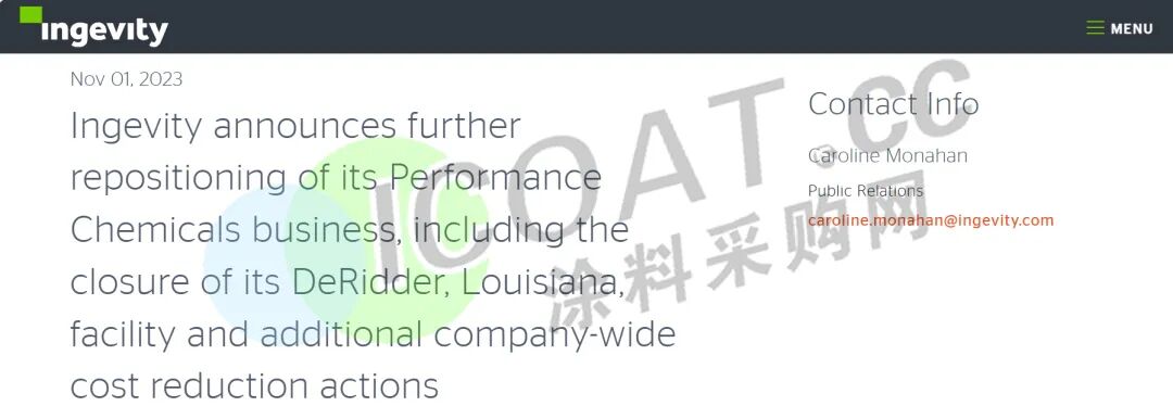 除此之外,不少化工企业宣布关厂,与倒闭放假有着异曲同工之妙。其中不乏三井、英威达、盛禧奥、科思创、赢创等, 聚己内酯衍生物的全球领导者英杰维特宣布进一步调整其高性能化学品业务,英杰维特将在2024年上半年结束前关闭DeRidder工厂,包括永久性关闭该工厂的生产设施。