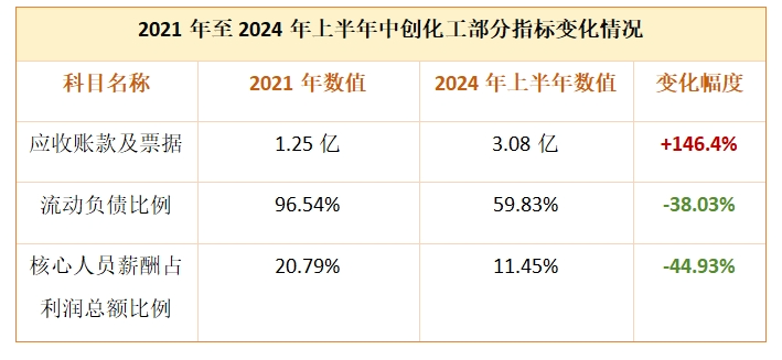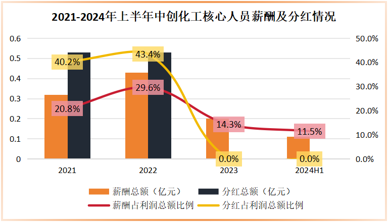 所以说,2022年之前中创化工的高薪酬和现金分红,更多的是保证原始股东的利益,而2023年及2024年上半年的下降则是回到了正常的水平。