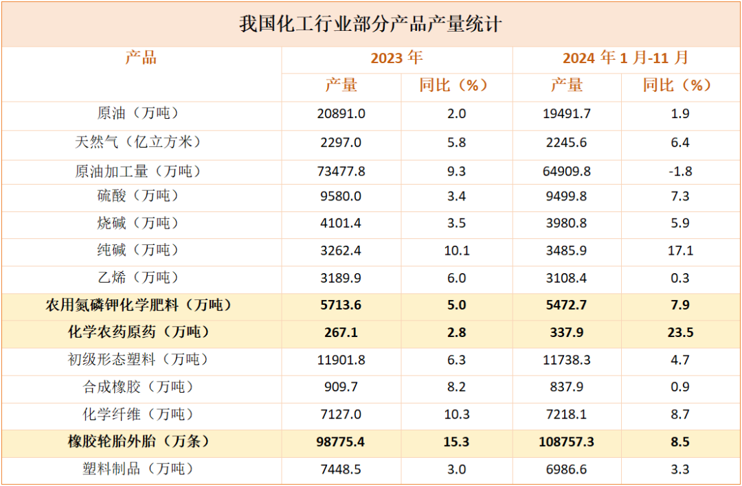 从不同细分赛道的发展来看,农用化工产品的产量增速最快,车用橡胶产品的规模最大。