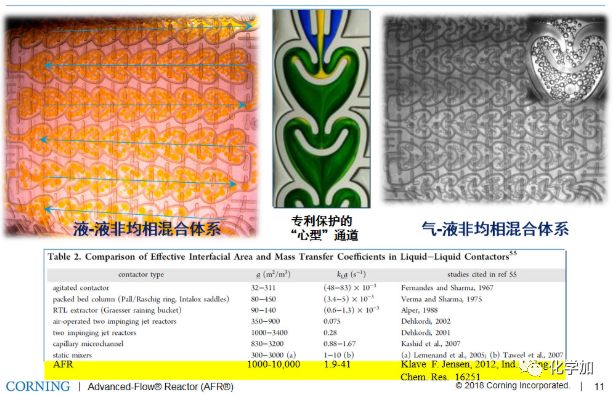 进一步分析该反应是否涉及气液体系。一般来说,当其中一种试剂是气体时,流动反应优于间歇反应。对反应器加压增加了气体在溶液中的溶解度,良好的通道结构设计可以强化非均相体系的混合,加速反应的进程;康宁反应器的专利通道结构设计可以大大强化气液两相的混合效果,使反应加速进行。