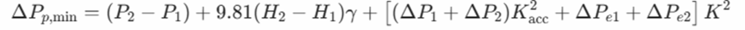 - 最小压差公式:ΔPp,min=K[(P-P)+ρg(H-H)+ΔP+ΔP+ΔPe+ΔPe]