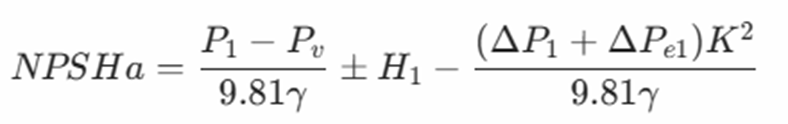 - 关键公式:NPSHa=(P+Pe-Pv)/γρg ± H - ΔP/γρg - ΔPe/γρg