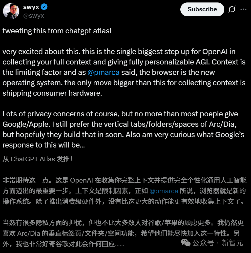 手快的网友,已经用上ChatGPT Atlas发推了!