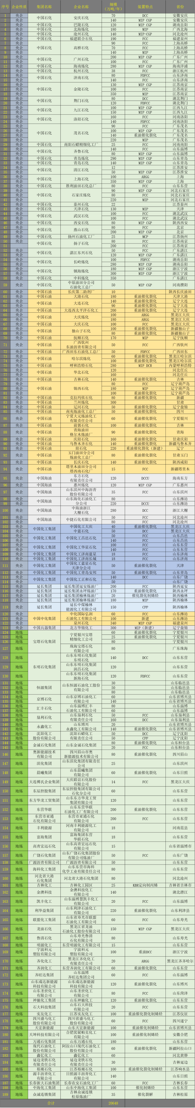 仔细看了一下,还是不太全,大连的350万吨催化就没有。